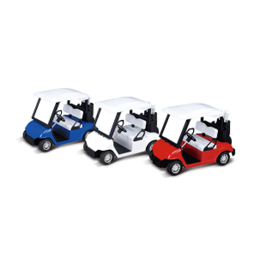 Have your own set of toy mini golf carts! Set comes with 6 toy golf carts, 2 red carts, 2 blue carts, 2 white carts. Pull the carts backwards and watch them go. Carts are detailed from inside to out, and come with their own mini golf clubs. Golf clubs cannot be removed but they can move around in their bag. Mini golf cart set is great for decoration or play.